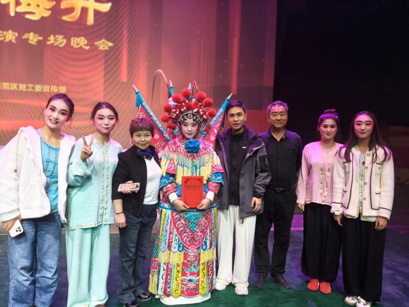 为全力备战第十四届河南省戏曲红梅展演,京剧系主任脱志国多次来到排练现场看望参演师生,亲自示范,精心指导。10月27日,京剧系教学秘书李嘉琪和2025级京剧班班主任高阳一同带队赶赴济源参演。为全力做好本次参演的保障工作,吕俊荣、马秀荣两位老师在音乐统筹、服化道打磨上倾心助力、精益求精,由京剧系学生周芳伊、刘世杰、竹新宁、王映棋、徐子怡、李浩瑜等组成的助演团队配合默契、表演到位。经过激烈比拼,李嘉琪带来的京剧剧目《卖水》,唱腔轻快,表演灵动,最终荣获银奖!