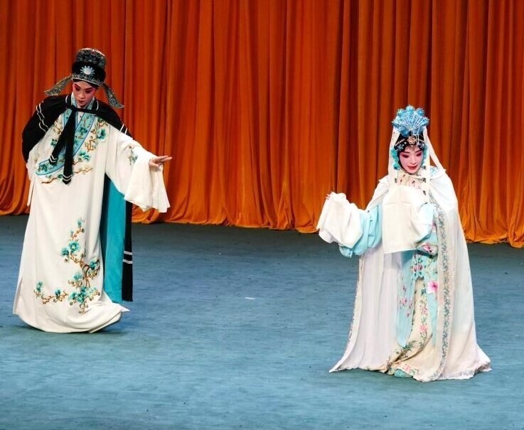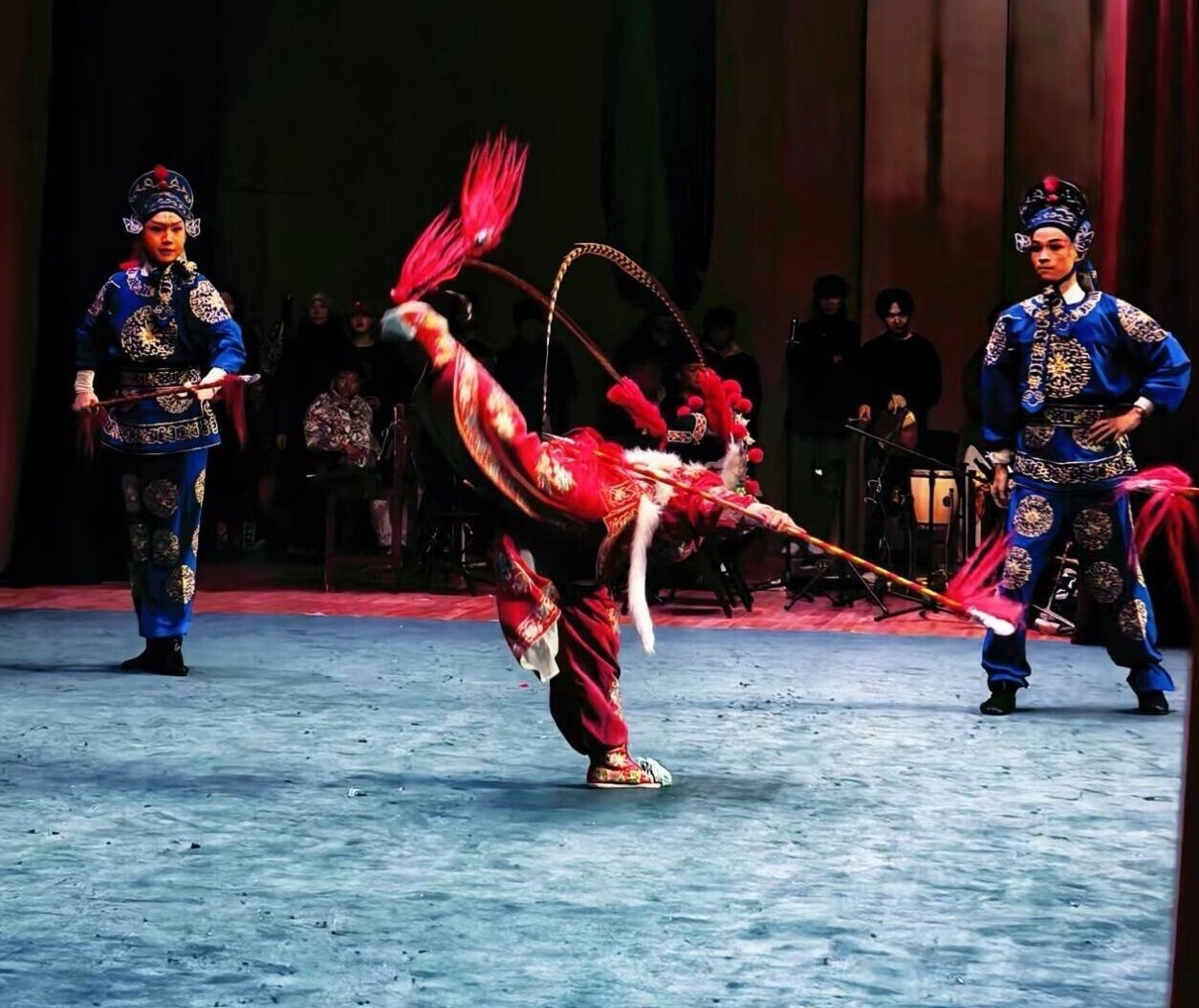 舞台之上,学子们在唱念做打中流露出专注与热情;舞台之下,乐队同学默契配合,锣鼓铿锵、弦索婉转,完成对舞台节奏与情感流动的精准把控,体现出戏曲艺术“一台戏、一股劲”的整体协作精神。
